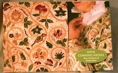 Kudos to Winterthur for making me feel really great. A while back Tricia Wilson Nguyen announced that the Plimouth Jacket would be exhibited at Winterthur in the exhibit "With a Cunning Needle." She offered a needlework project as a fundraiser. I decided I didn't want to stitch this one, but did like the idea of the exhibit so I clicked the link Tricia wisely provided and donated some money to the project (not much, but what I could). The lovely catalog below is, I think, the third item I've received from the museum, in thanks for my donation. I was amazed to receive this exhibit catalog.